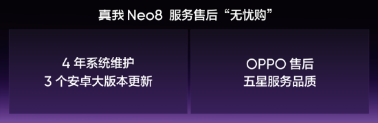在強大產品之上,真我Neo8更提供“無憂購”服務保障。系統維護方面,真我Neo8承諾4年系統維護與3個安卓大版本更新,從大一用到大四,系統仍能保持流暢如新的使用體驗。售後服務方面,真我手機將於今年4月全面接入OPPO售後服務體系,享受OPPO五星服務品質,包括面對面維修、可視化寄修服務、30天性能故障包換、維修部件至高180天質保等全方位保障,讓用戶買得放心、用得舒心。