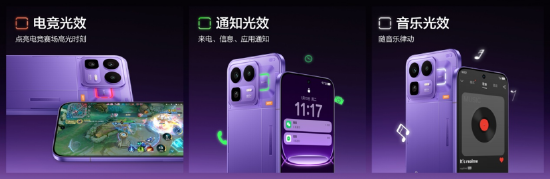 覺醒HALO系統煥新回歸,深度融入系統交互各場景。電競場景下,遊戲擊殺與關鍵節點觸發對應光效,將屏幕內的戰鬥成果延伸至機身背面,強化感官反饋。日常場景下,智慧彈碼功能讓手機翻轉即自動彈出付款碼並亮起光效,扣碼付款更便捷;來電、消息、充電等場景也有對應光效提示,即使屏幕朝下也能獲取關鍵信息。此外還有翻轉幸運色等趣味玩法,帶來豐富的個性化體驗。
